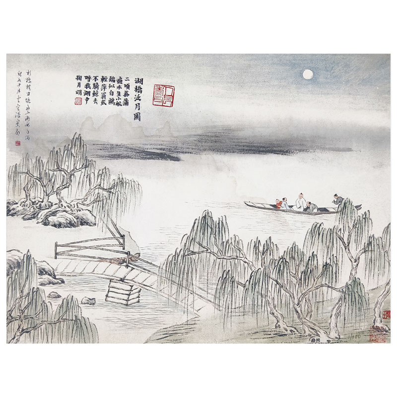 齐白石版画《湖桥泛月图》1.5平尺