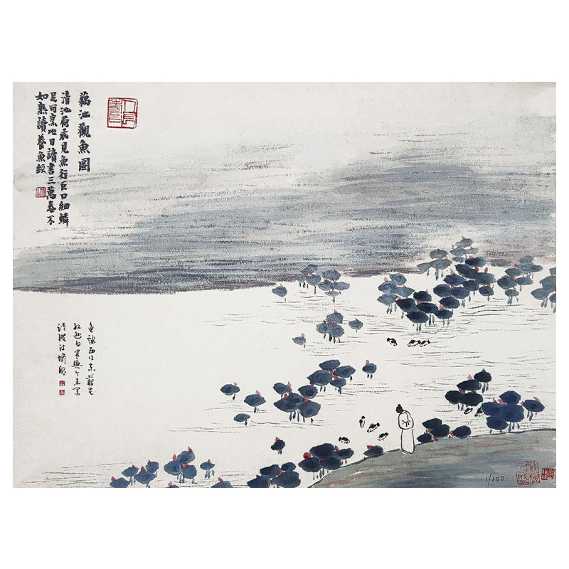 齐白石版画《藕池观鱼图》1.5平尺