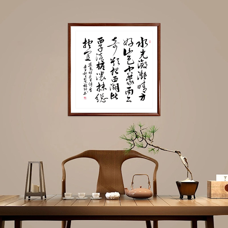 杨帅《饮湖上初晴后雨》红木色实木画框80x80cm