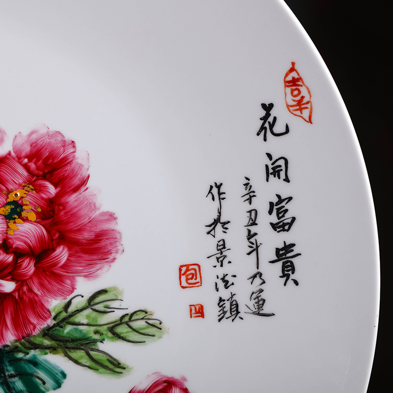 景德镇新彩指画赏盘《花开富贵》